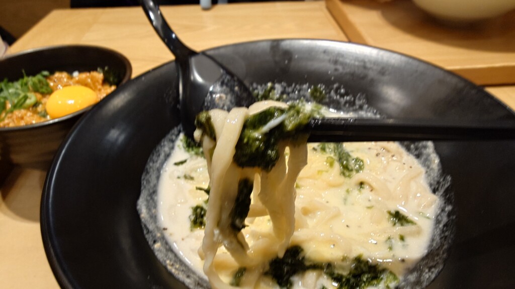 クリームベースのお出汁をふんだんに絡めて味わうスタイル