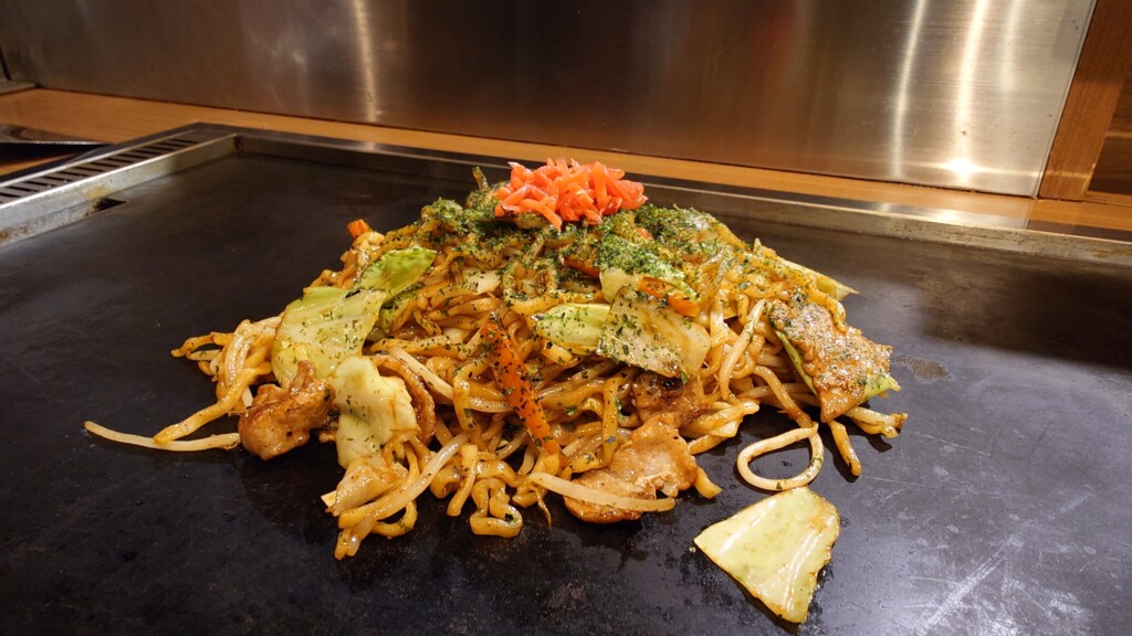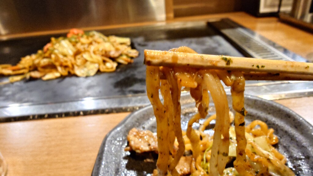 この麺がたっぷりソースを絡めつつ、焼き目らに独特の食感をプラス