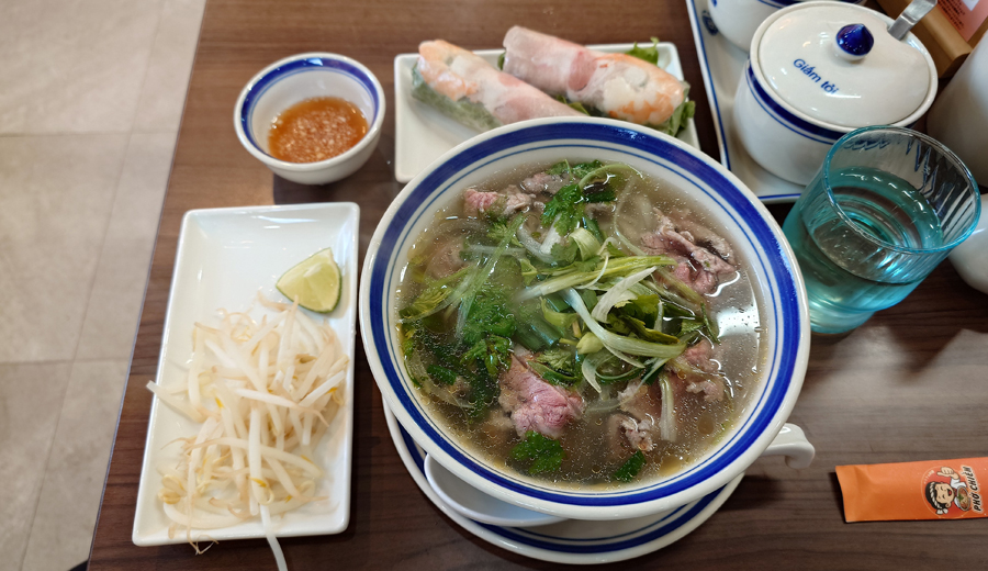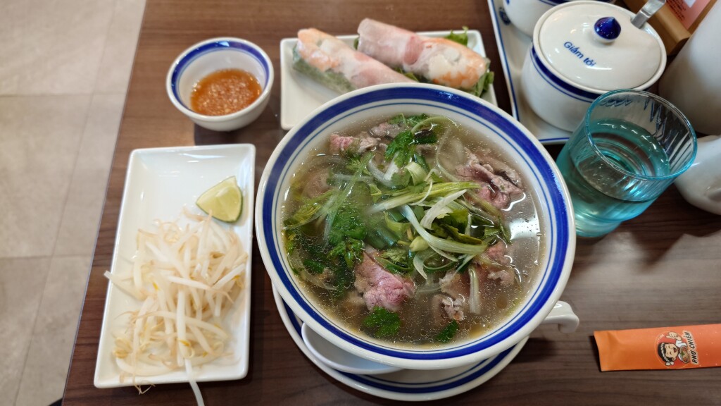 「フォーチェン 本千葉駅店」にて頂くレア牛肉フォー&生春巻きとなります