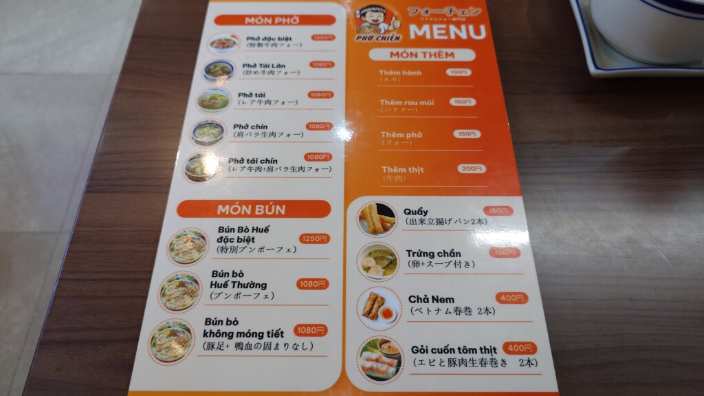 食べ馴染みある筈のフォーながら、思い描くものとは異なる様子も垣間見える同店のメニュー