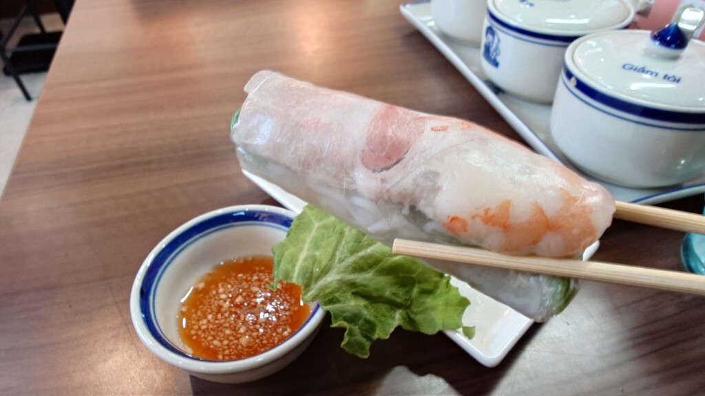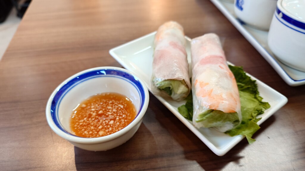 加えてサイドメニューより、海老と豚肉生春巻きも頂いてみることに。
