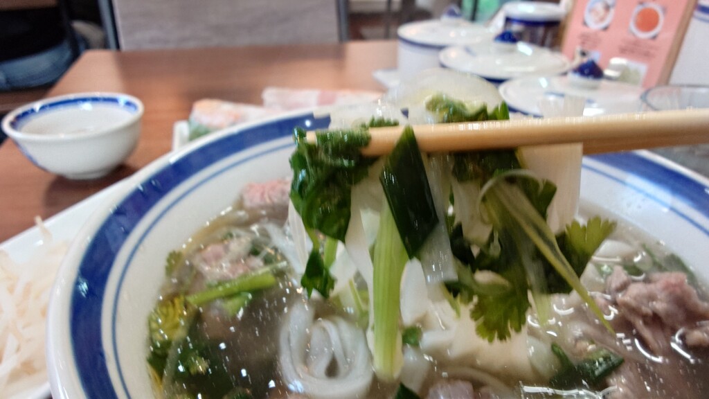 平打ちのフォーは程良くスープと絡み