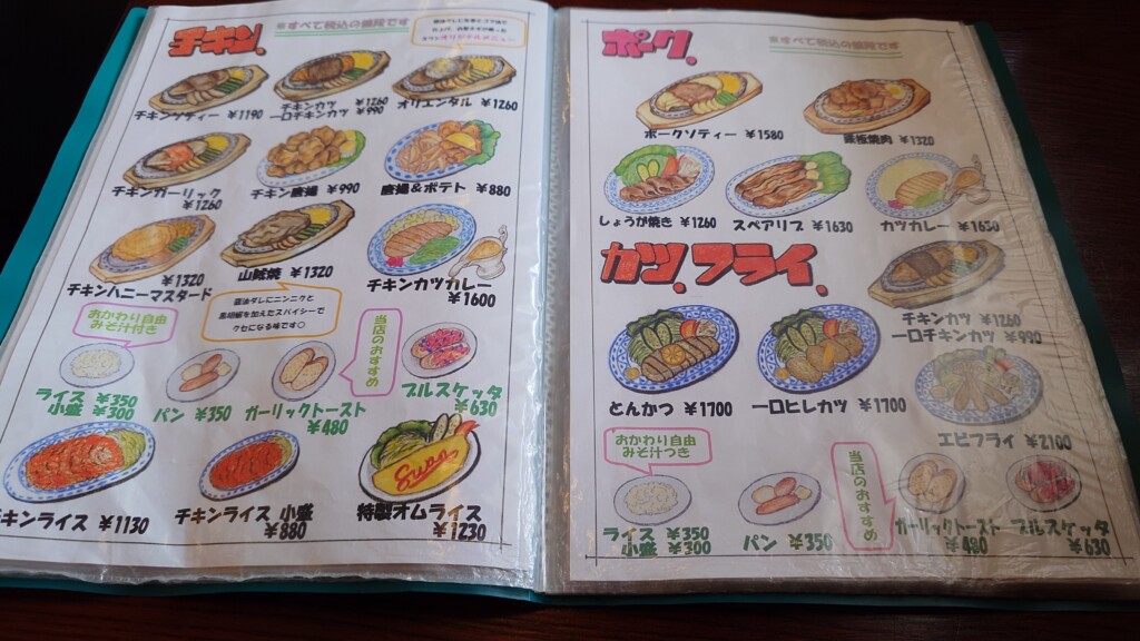 チキン、ポーク、更に別ページではビーフも並び