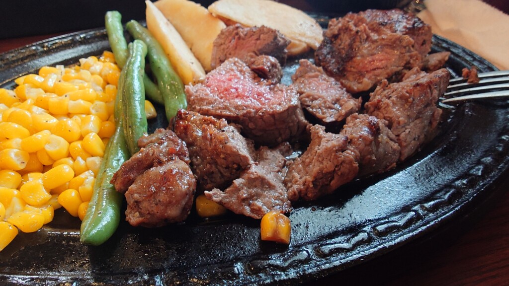 また、序盤こそ赤身らしい強い食感続くステーキとなりましたが、