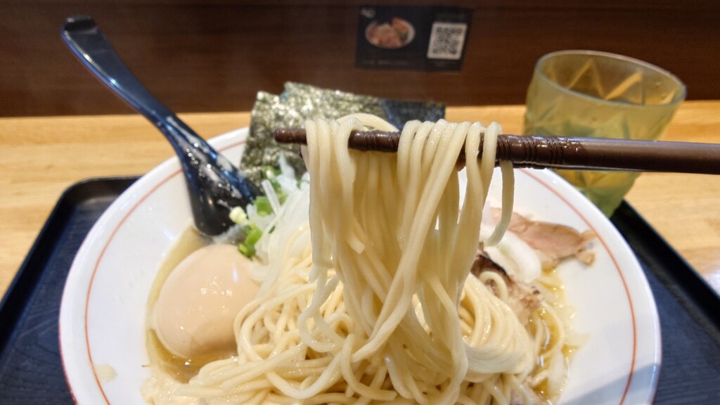 パツッとした歯ごたえが特徴となる、こちらの細麺