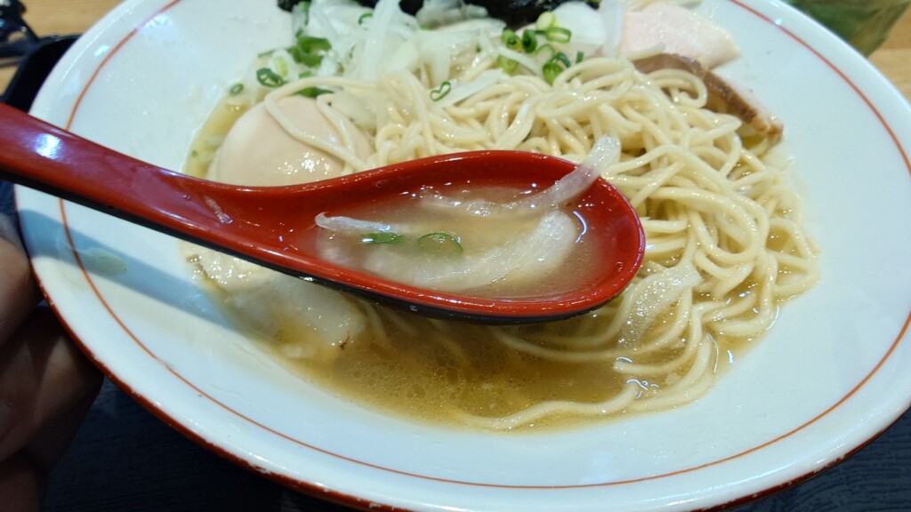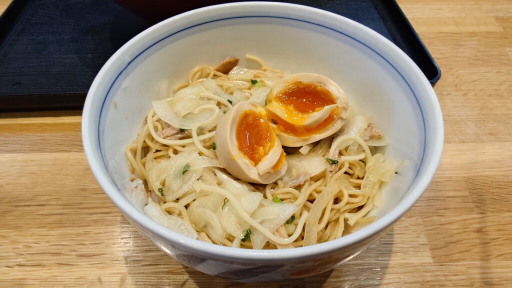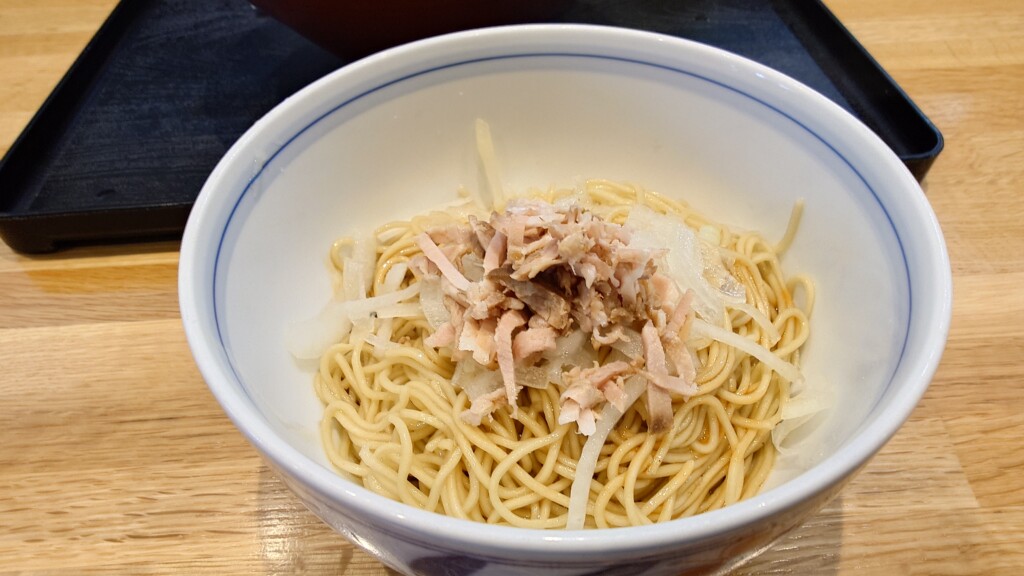 シャキッとした食感をも残すことで、麺との食感の差異を楽しみつつ、煮干し×玉ねぎの調和をも与える1品に