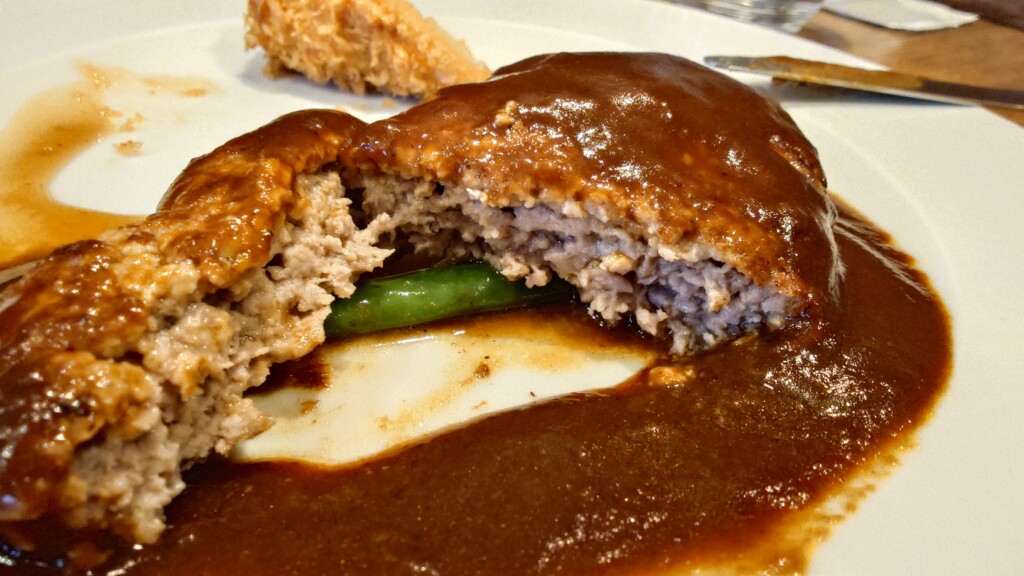 デミソースたっぷりで提供となる、こちらのハンバーグ