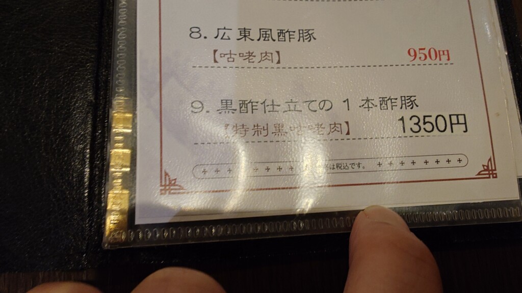 山海宴を訪問し、同店名物とも言える黒酢仕立ての1本酢豚を頂くことに