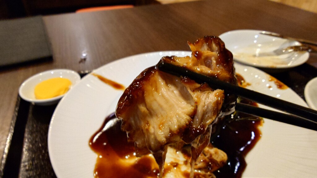 黒酢を主体としたタレを前身に纏い、その黒光りする様がまあ食欲そそる訳で