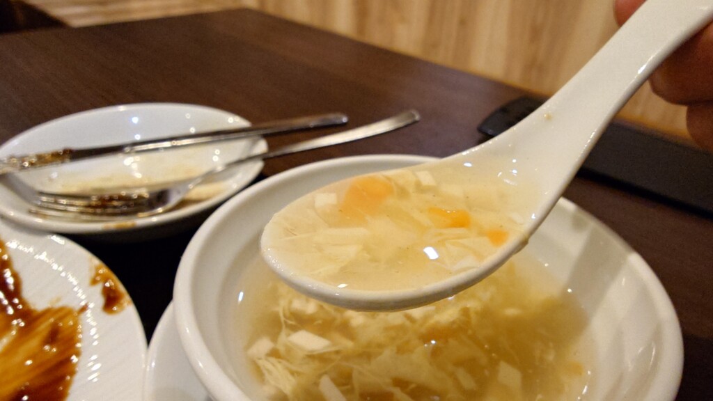 こちらもまた、溶き卵に豆腐らを加えた具沢山な一杯が提供