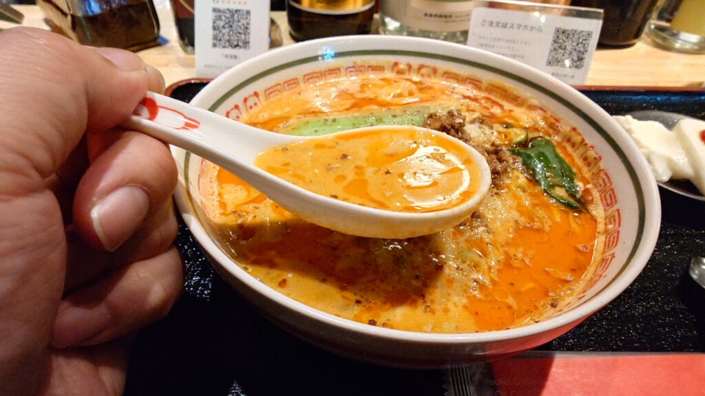 胡麻のコクに白湯スープの濃厚さが先行し、辛さはそこまで感じさせない仕様