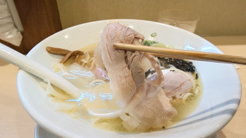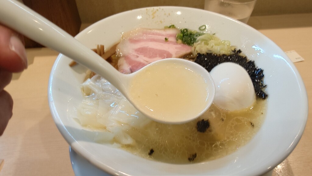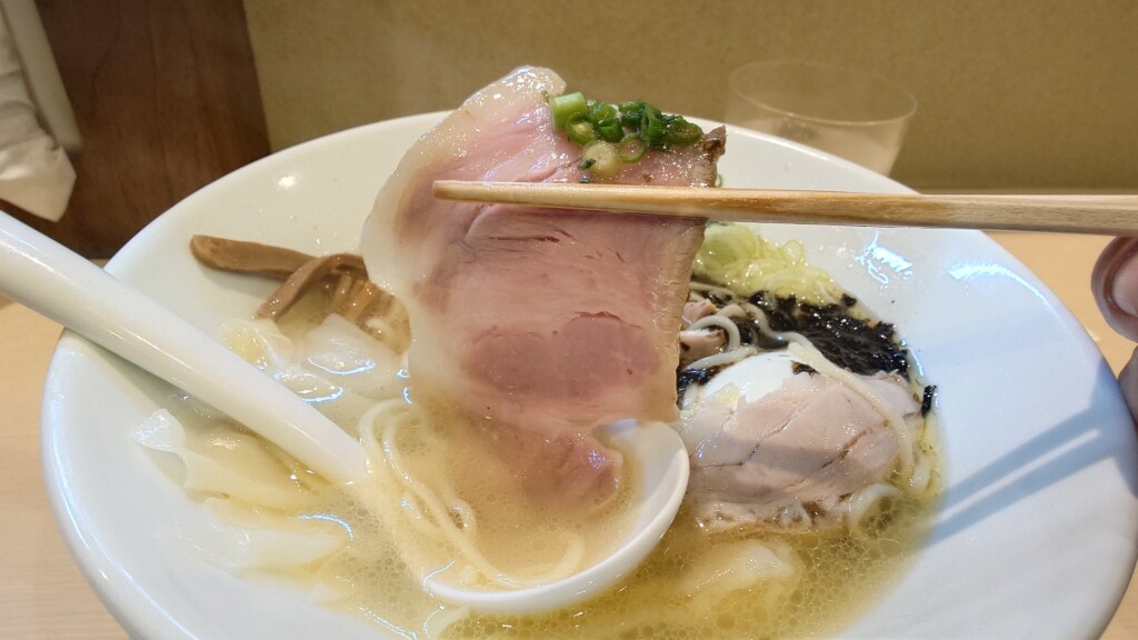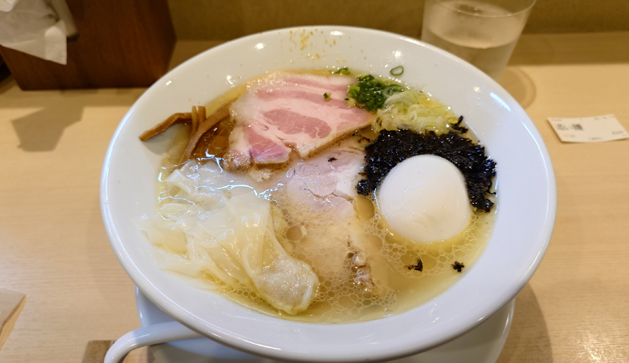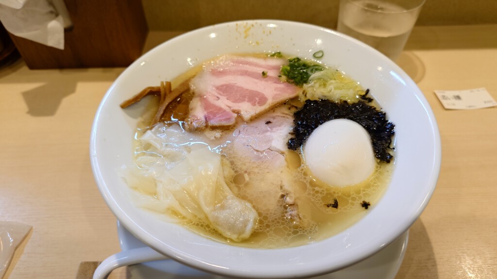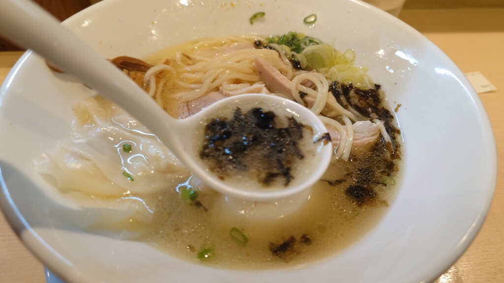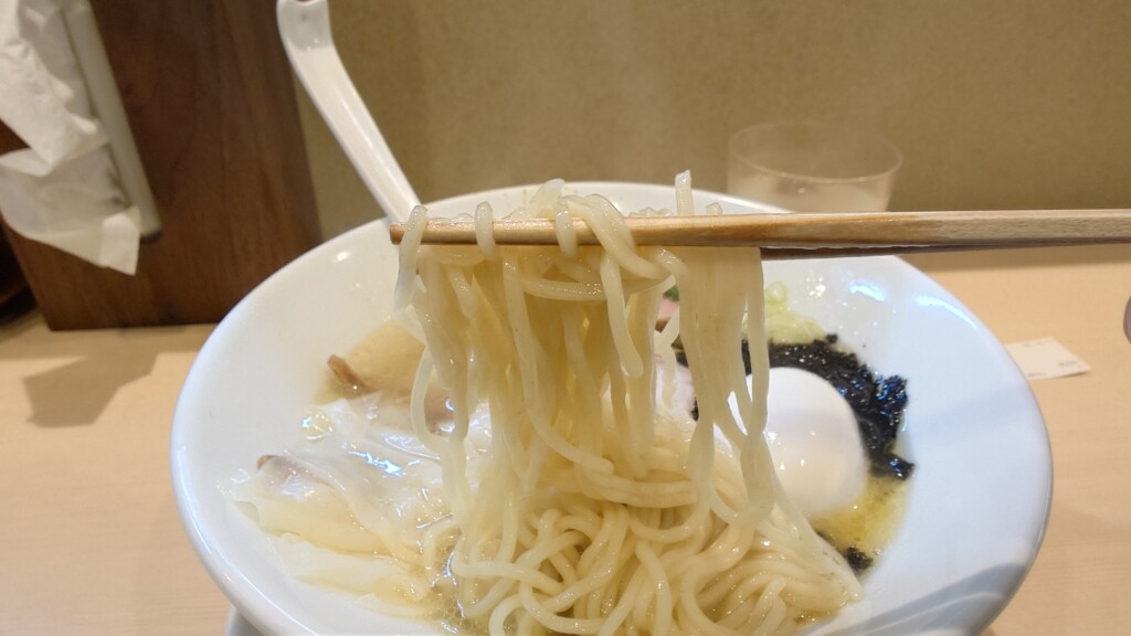 乾物らの旨味広がる絶品スープで頂く塩中華そば 限定追い麺は腹パン必至