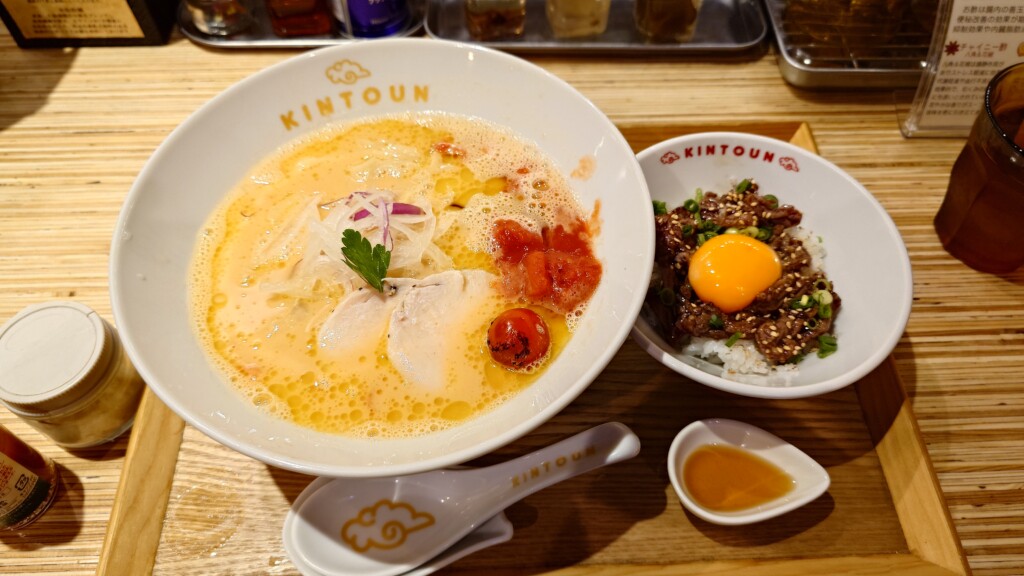 「トマトクリームらーめん&炙りユッケ丼」となります