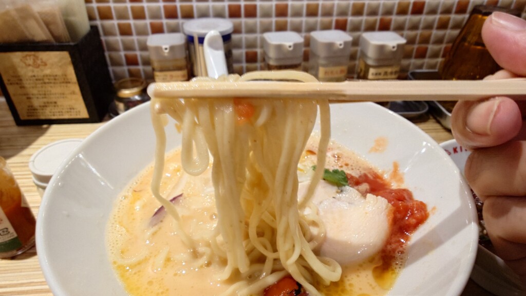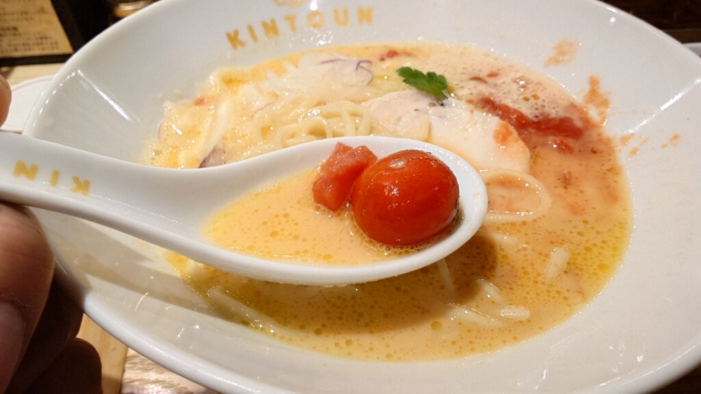更に際立つトマト風味を楽しませる変化も加わるこちらのラーメン