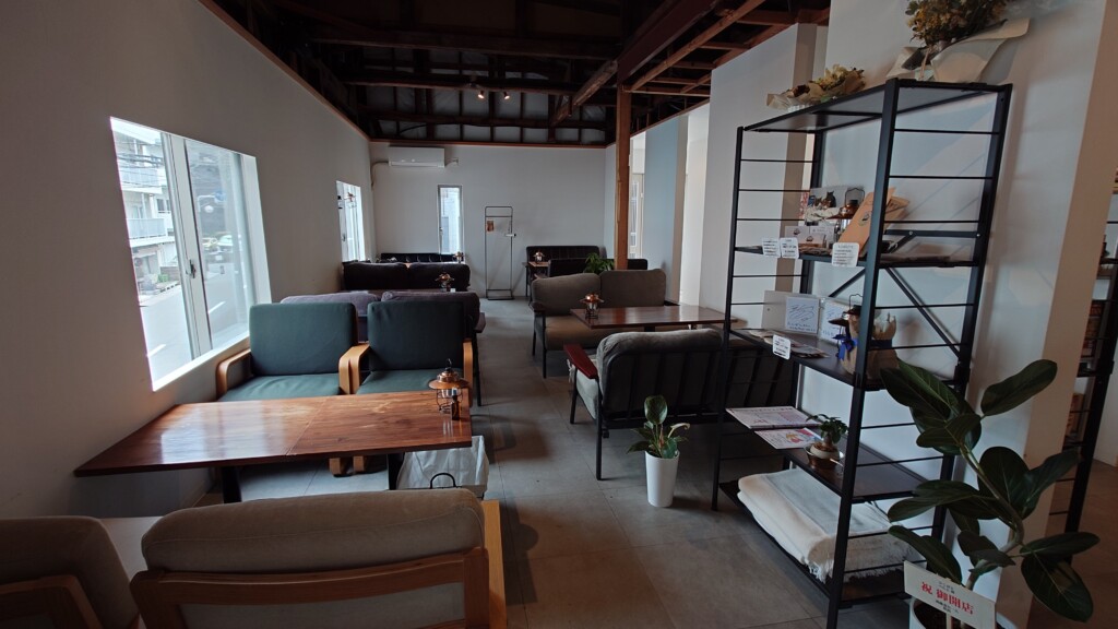 少し分かりづらい立地ながら、広々とした店内は寛ぎやすく居心地も良好なカフェに