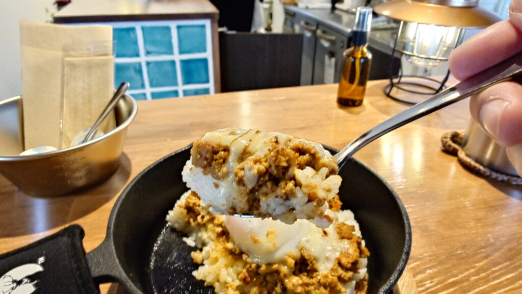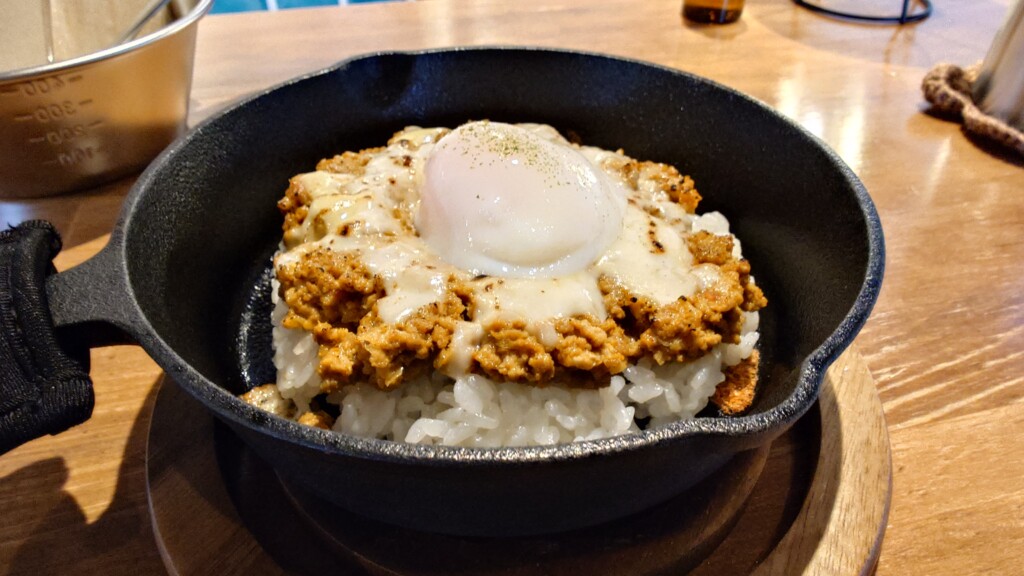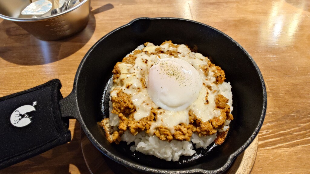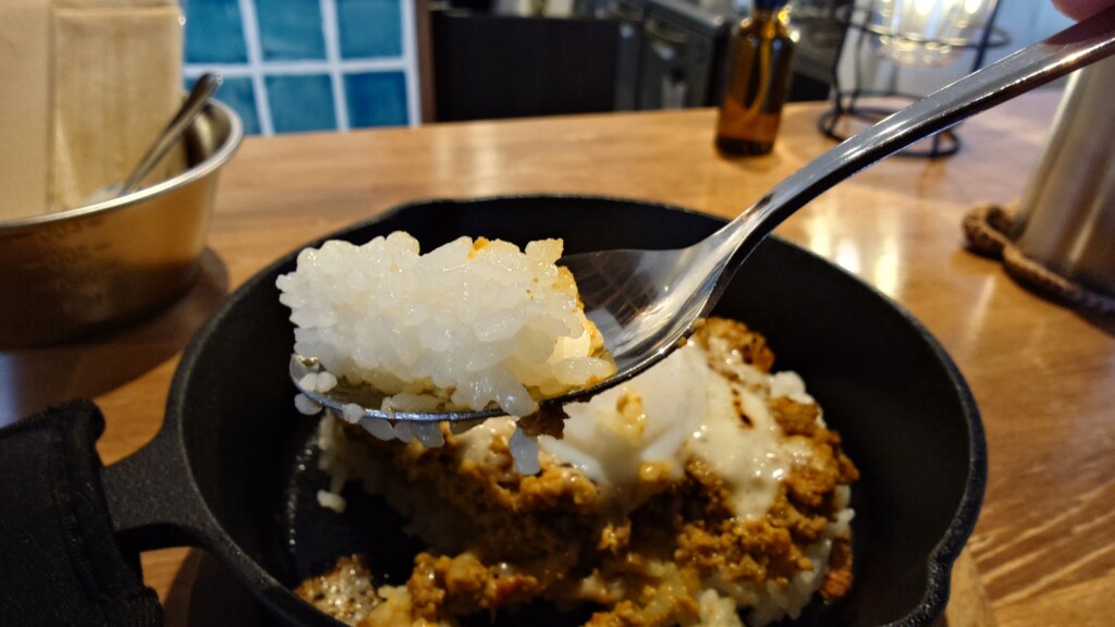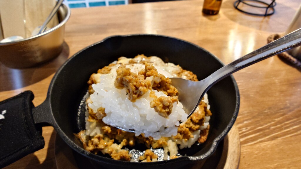 甘み広がるお米をスキレットにて提供 辛さ控えめも肉感たっぷりなキーマカレー