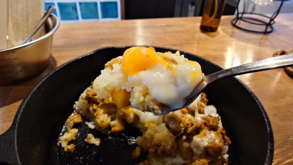 フードについてはキーマカレーを半熟卵&チーズトッピングでオーダー