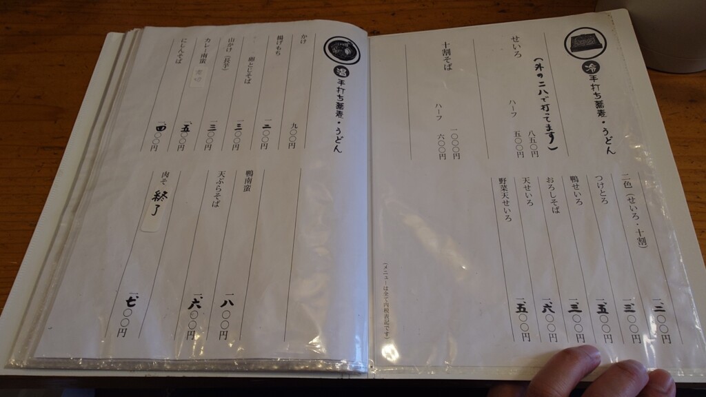 まずは冷たい蕎麦・うどんから始まるこちらのメニュー