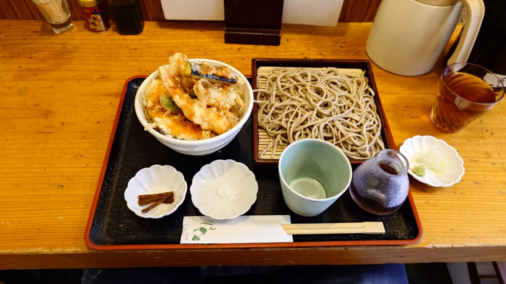 そんなガッツリランチを狙うべく、本日はお蕎麦と天丼のセットをオーダー