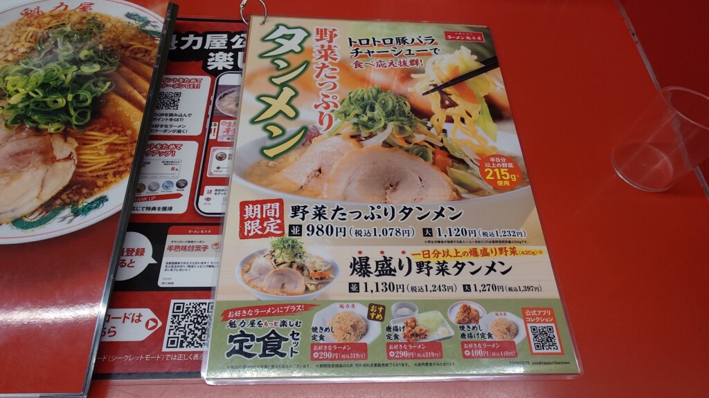 限定メニューの野菜たっぷりタンメン&新メニューのぶたから定食となります
