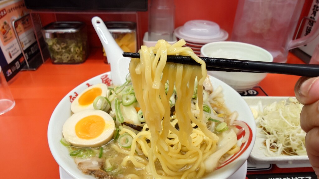 やや縮れを加えた平打ち麺での提供に